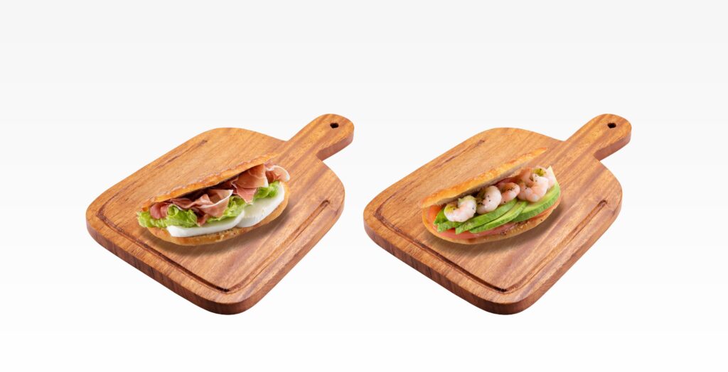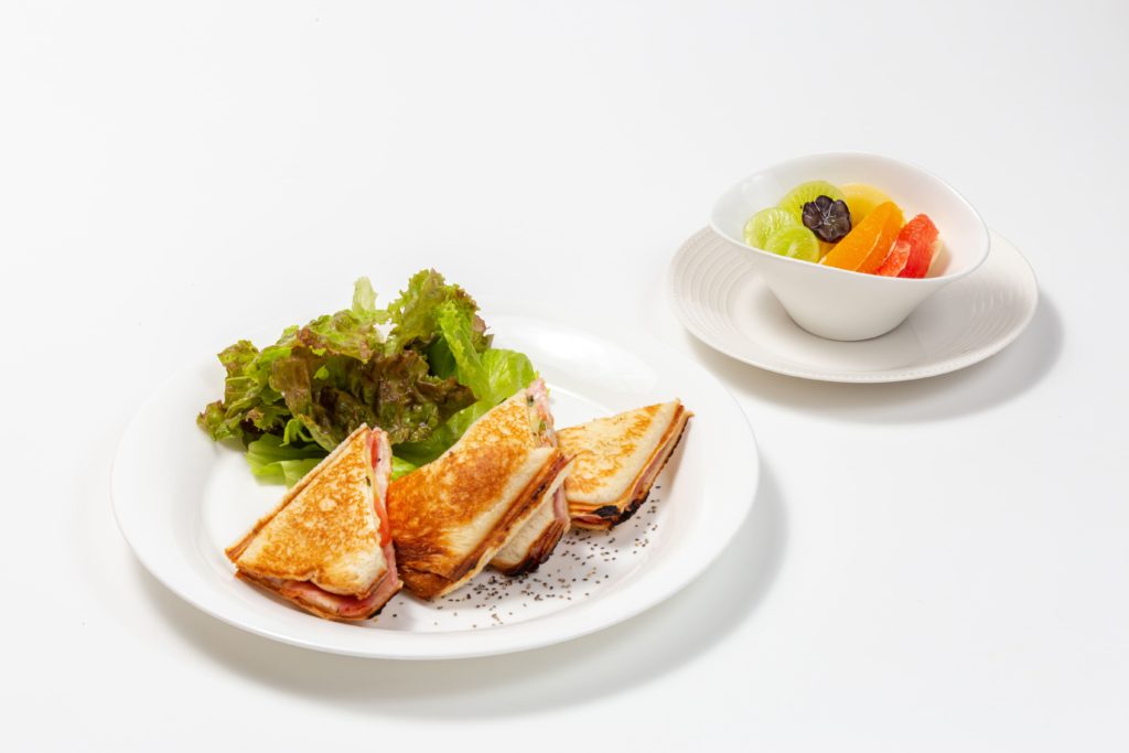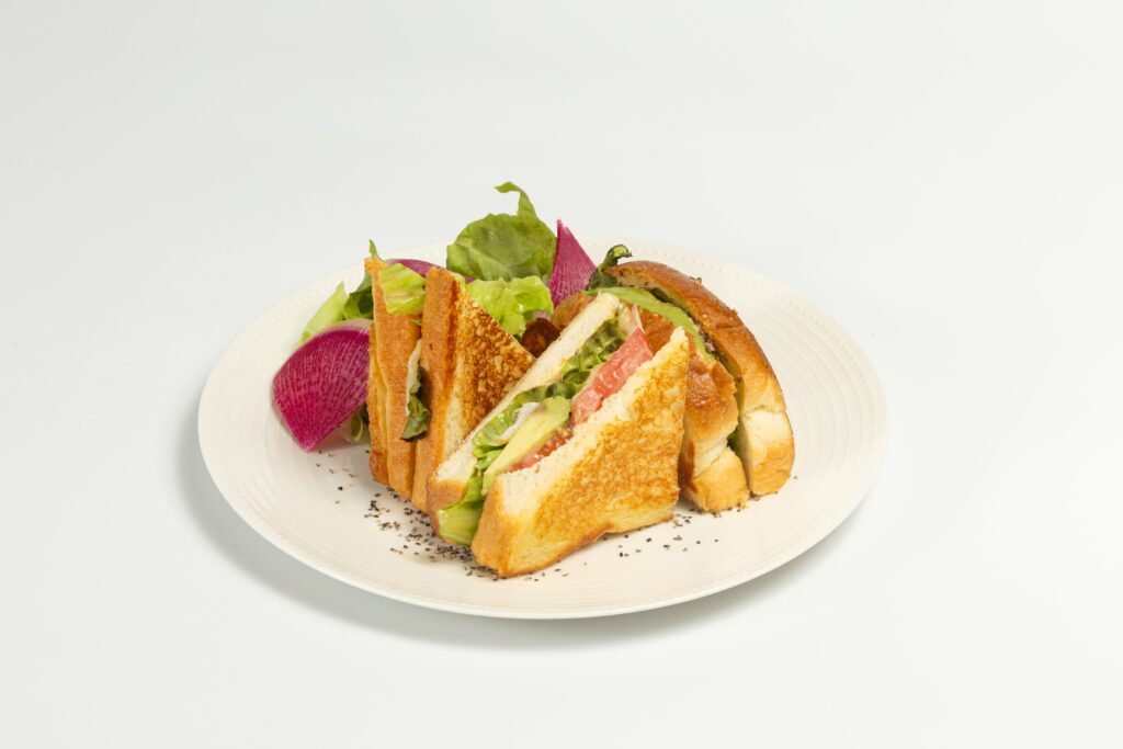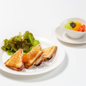 「ベーコンとチーズの焼きサンド」、「アボカドと海老のホットサンド」の2種類をご用意しております。