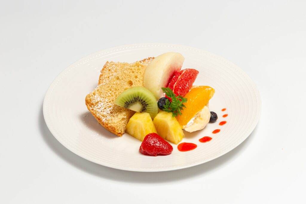 旬のフルーツと軽いくちどけのシフォンケーキの相性はバツグンです。