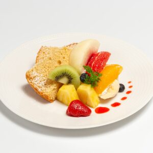 ふわふわのシフォンケーキを当店自慢のフルーツで彩りました。