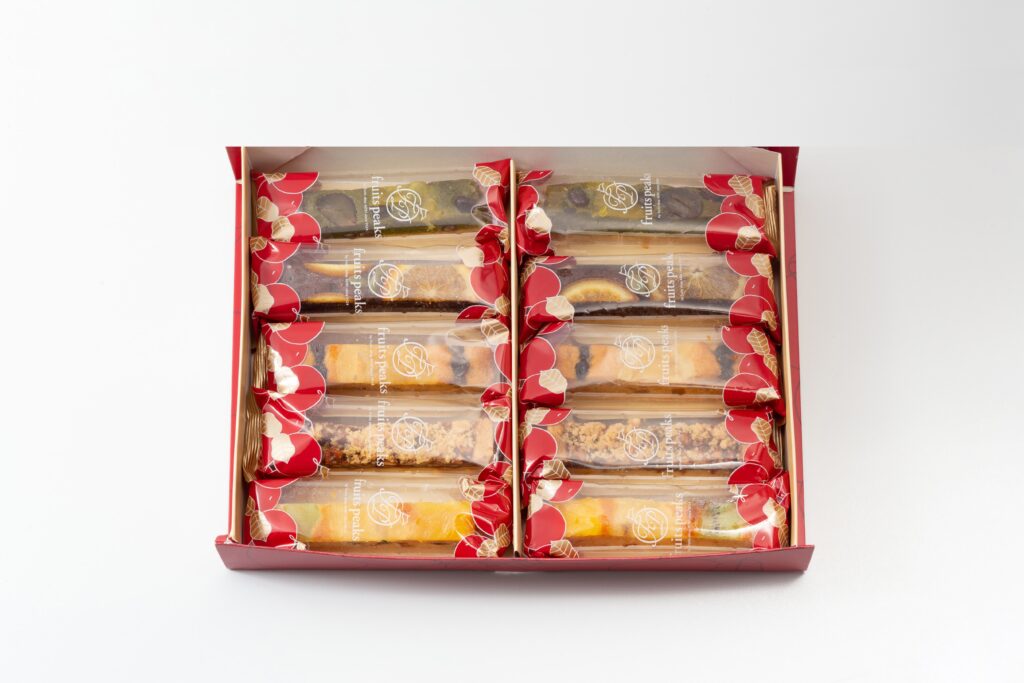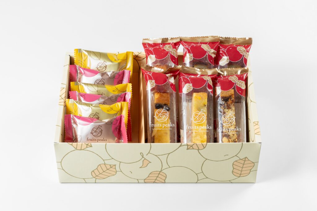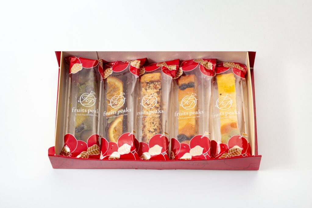シャインマスカット、いちじく、和梨、柿、りんごの5種類の果物を使用しました。