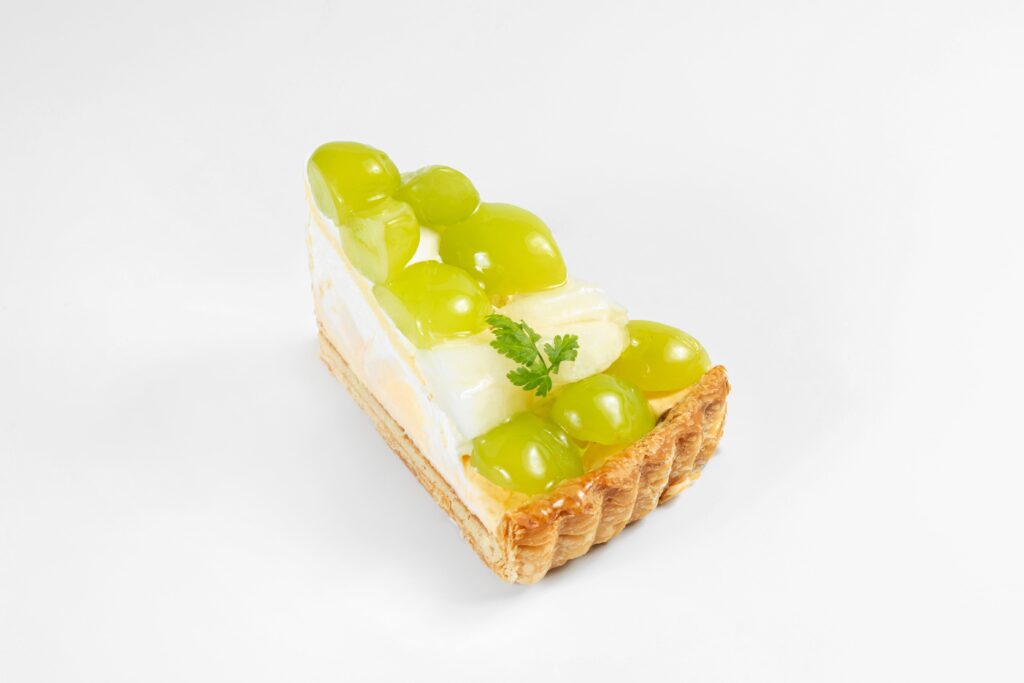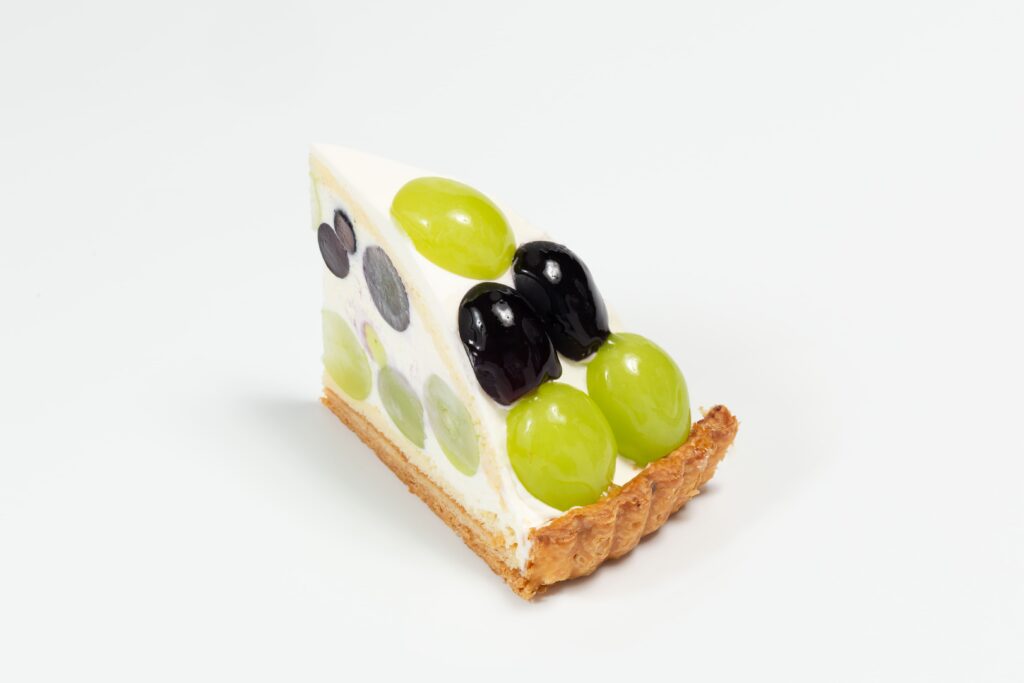 ふわふわのスポンジ生地に、カスタードと生クリームを合わせた濃厚でコクのあるクリームを重ね、旬のシャインマスカットを贅沢にトッピング。