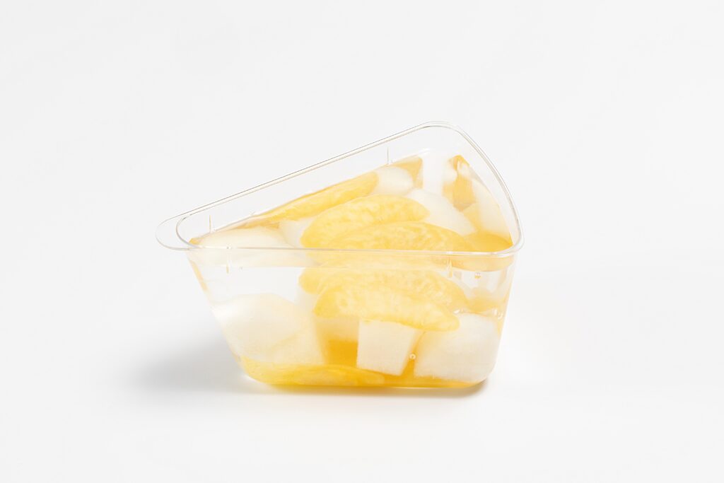 甘くみずみずしい和梨と、淡い黄色の果肉とすっきりとした甘みが特徴の黄桃を甘さ控えめのゼリーにたっぷりと閉じ込めました。