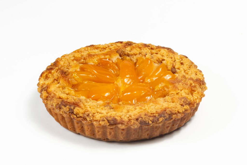 香ばしく焼き上げたクッキー生地に甘酸っぱいアプリコットがアクセントになる、どこか懐かしいタルトです。