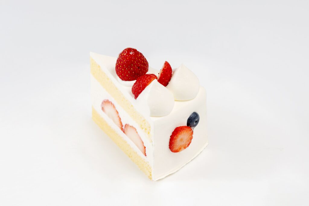 ふわふわのスポンジとなめらかな生クリームでいちごをサンドしたショートケーキです。