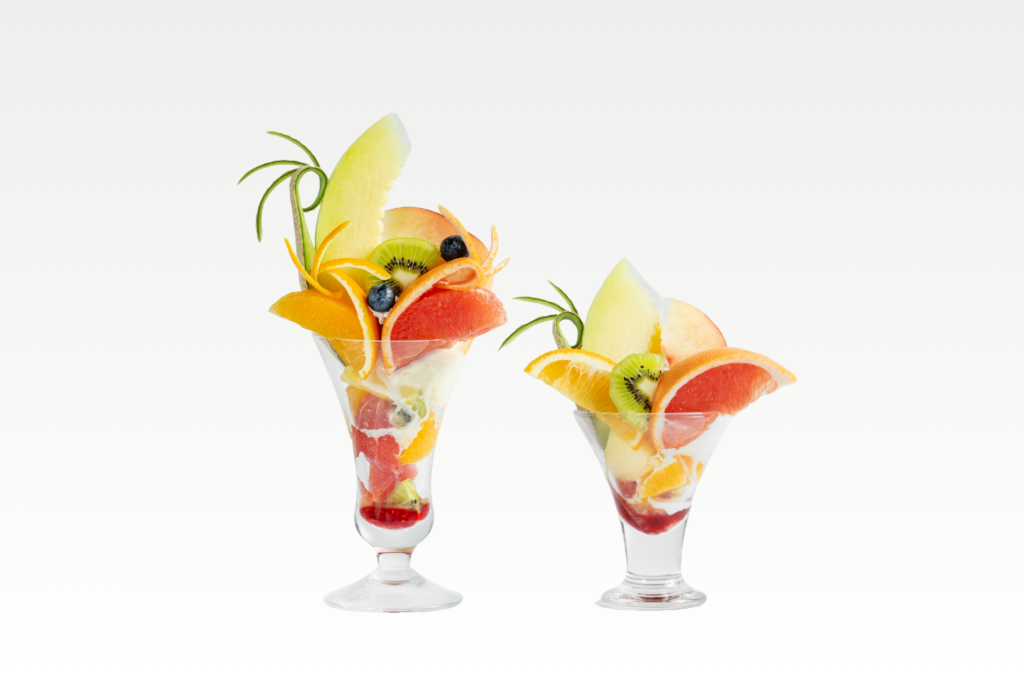 まろやかなカスタードクリーム、ヨーグルトクリームが果物のジューシーな味わいを引き立てます。